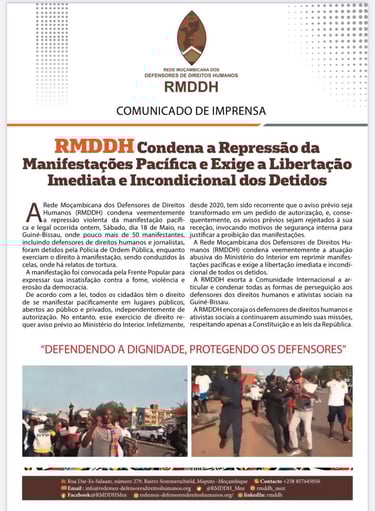 A Frente Popular agendou uma manifestação pacífica hoje, dia 18 de maio para demonstrar a sua insatisfação contra a fome, a Violência e a Destruição da Democracia. Como sabem e é de LEI, que todos os Cidadãos têm direito de se manifestarem pacificamente em lugares Públicos, Abertos e Particulares independentemente da autorização.