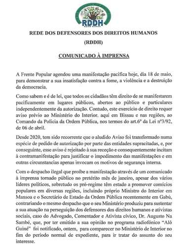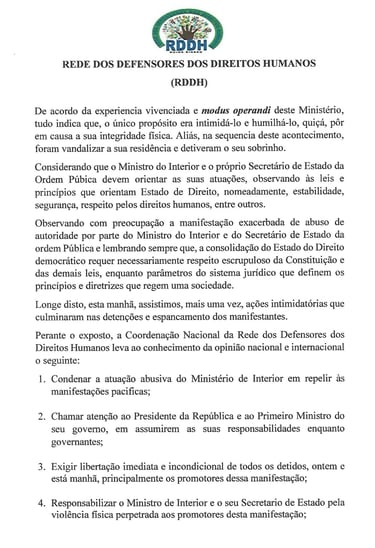 Comunicado à Imprensa, sobre Direitos e Liberdade de Manifestação
